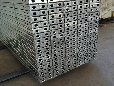 鋼跳板材選用碳素鋼冷加工制造,通過熱鍍鋅技術,運用壽命可達5-8年左右。